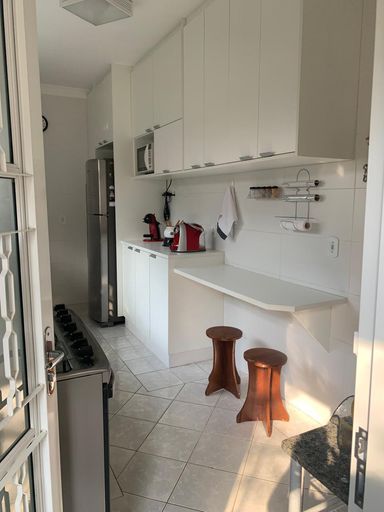 A cozinha é totalmente planejada, oferecendo excelente aproveitamento de espaço e funcionalidade.
