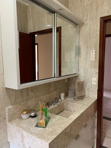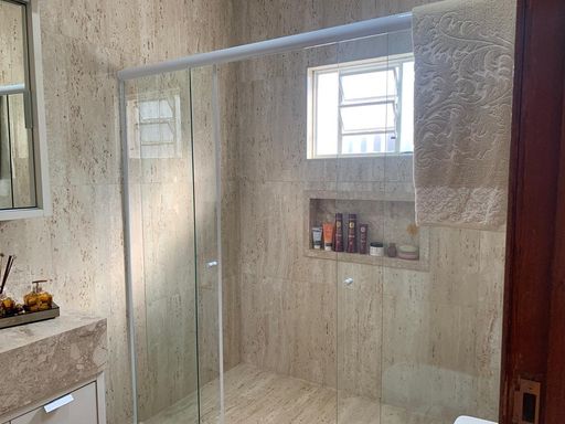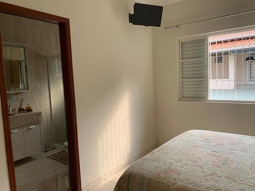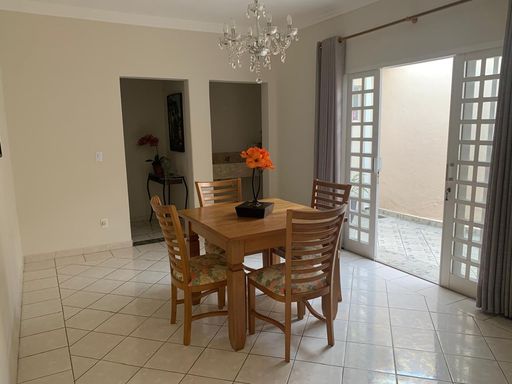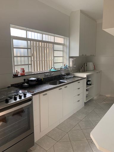 Casa ampla e bem estruturada com 3 dormitórios, sendo 1 suíte, todos com móveis planejados, além de banheiros equipados com armários sob medida. O imóvel conta com duas salas amplas, sendo uma de estar e outra de jantar, integradas e com lavabo próximo à área social, proporcionando conforto e praticidade.