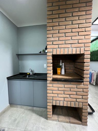 Espaço gourmet com churrasqueira, também com móveis planejados, perfeito para momentos de lazer