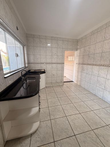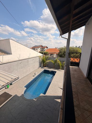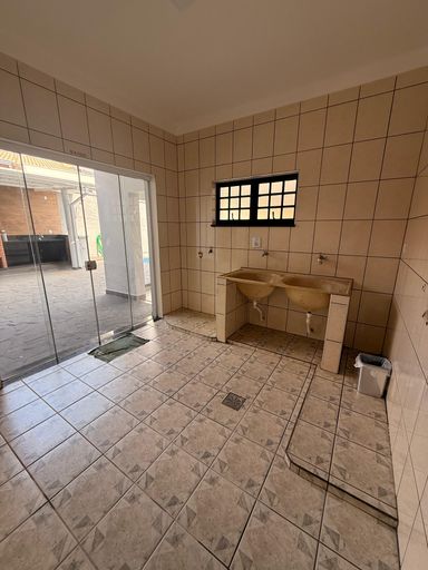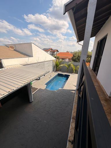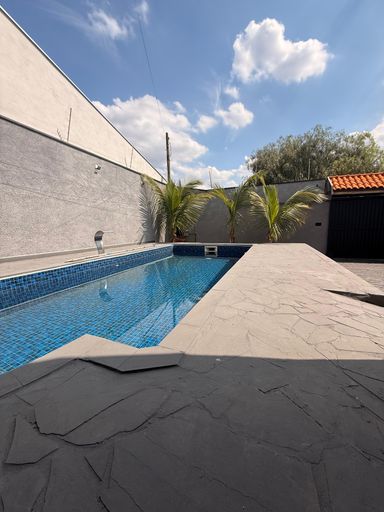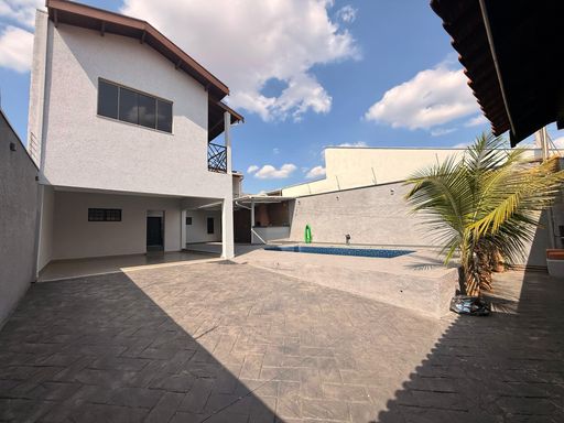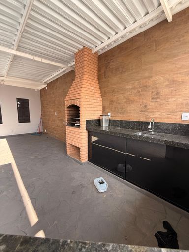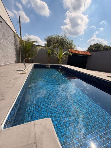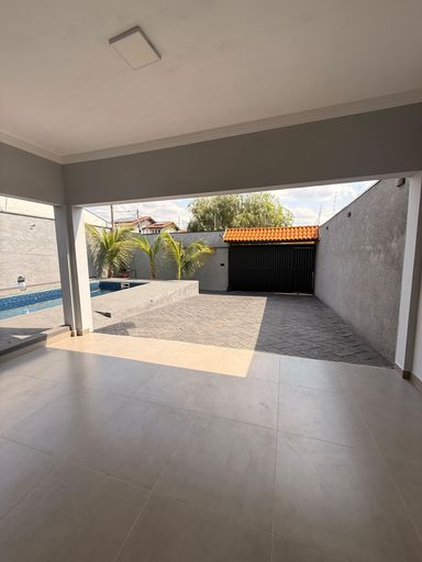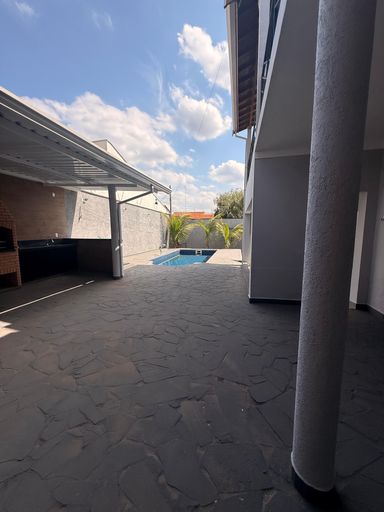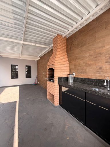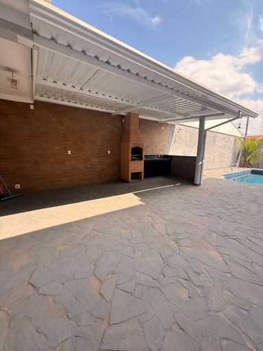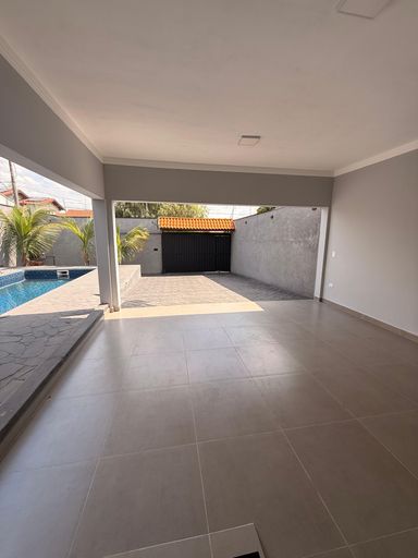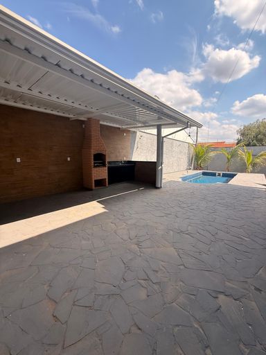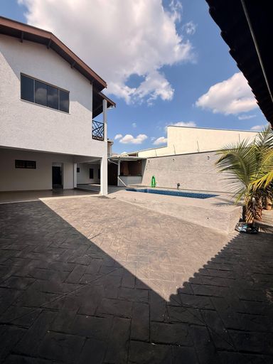 A casa também possui piscina e área gourmet com churrasqueira, e um amplo quintal com vagas para seis carros.